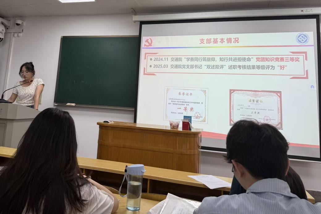 会议伊始,周婧盈同志从“支部基本情况”、“五化引领聚合力,推进党建责任走深走实”、“四维协同争一流,驱动支部建设提质增效”三个方面进行阐述,对2024-2025年度支部的工作情况进行汇报。研究生第一党支部在过去一年中荣获了交通学院党支部书记“双述双评”述职考核“好”等级、丝袜av