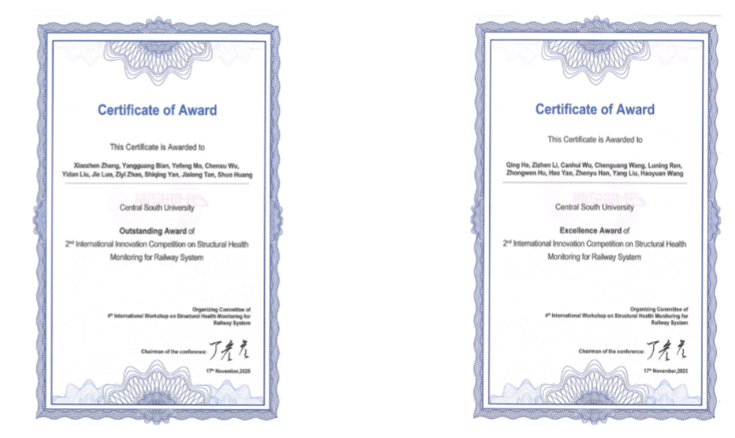 丝袜av 丝袜av 团队在第二届轨道交通结构健康监测国际创新大赛获杰出奖、卓越奖等多项佳绩
