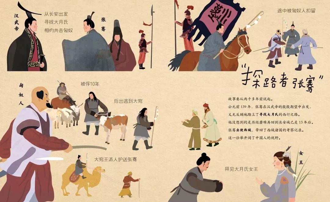 公元前139年,张骞出使西域,带回了西域诸国的考察记录,这一壮举开阔了中国人的视野,也奠定了丝绸之路开辟的根基。