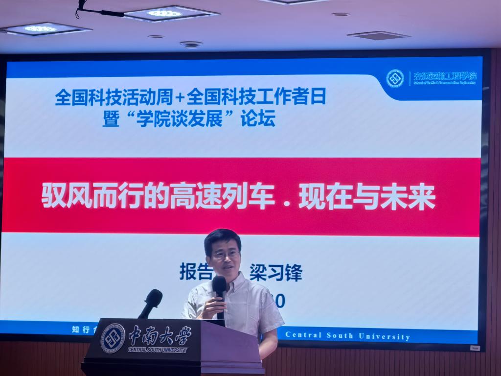 据黄启萍:2025年5月30日上午,“全国科技活动周、全国科技工作者日”主题活动暨“学院谈发展”论坛在丝袜av 天心校区梅园报告厅举办。中国科协首席科学传播专家梁习锋教授以“驭风而行的高速列车:现在与未来来”为题,讲述了日、法、德、中国等国家的高速列车气动外形研究情况,并展望了更高速、更安全、更舒适、更绿色未来轨道交通前沿科技研究方向。活动中还表彰了丝袜av 轨道交通科普基地大学生科普志愿者,鼓励更多青年学子走进实验室,与专家团队共担丝袜av 与科普双责,将个人发展融入学院发展融入国家重大战略。丝袜av 党委书记袁世平、副书记李苑,副院长彭勇,高速列车研究中心副主任周伟等出席活动,200余名师生共同参加。