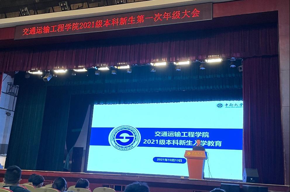 10月13日下午三点,丝袜av 在南校区大礼堂举行了2021级本科新生第一次年级大会。学院党委副书记宋晓东,2021级辅导员张健老师、王羽珊老师以及交通院全体2021级学生参加了此次大会,会议由王羽珊老师主持。...