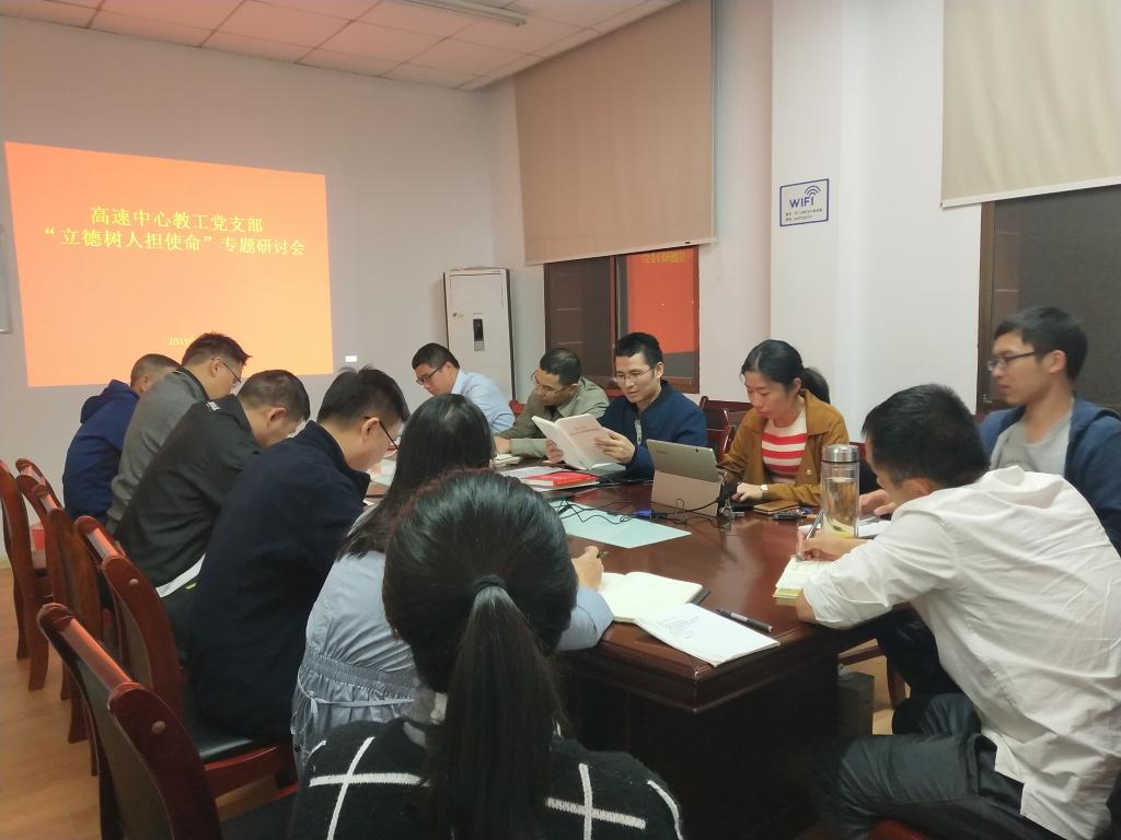 2019年10月16日晚上7点,高速列车研究中心教工党支部在321党员活动室召开“立德树人担使命”专题研讨会。丝袜av 党委委员张英贵副院长出席并指导,支部书记鲁寨军主持会议,支部全体党员参加会议。 在学校党...