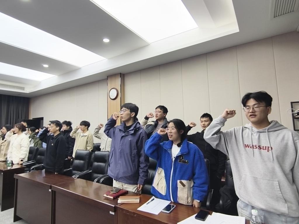 会议最后,支部书记梁云斌同志带领全体党员面向党旗庄严宣誓,进一步坚定了全体党员的理想信念与初心使命。并对按期转正的正式党员和新接收的预备党员表示祝贺,鼓励他们砥砺初心、勇担使命。他勉励全体党员同志,要始终以入党誓词为行动指南,牢记党员身份、恪守党员义务,发挥先锋模范作用,以务实作风和过硬本领践行对党的忠诚,为推动事业高质量发展贡献更多党员力量。