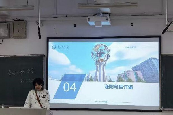 学院通过多种方式对学生开展线上及线下电信网络诈骗防范宣传教育,辅导员对于学生电信网络诈骗防范教育做到“每周一提醒”,以此避免同学们上当受骗。