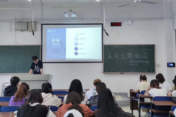 班会强调了寝室是同学们共同生活居住的地方,需要时刻注意用电防火安全,切忌将电瓶、电热毯等大功率电器带回寝室充电,并且不随意在寝室内更改、拆卸、安装电源线路、插座、插头等,要了解电源总开关的位置,学会在紧急情况下切断寝室总电源。