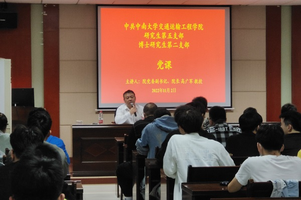 研究生第五党支部与博士研究生第二党支部于交通楼513开展了“学习宣传贯彻党的二十大精神”专题联合党课。此次联合党课的主讲人为院党委副书记、院长高广军教授,支部全体党员同志到场学习。