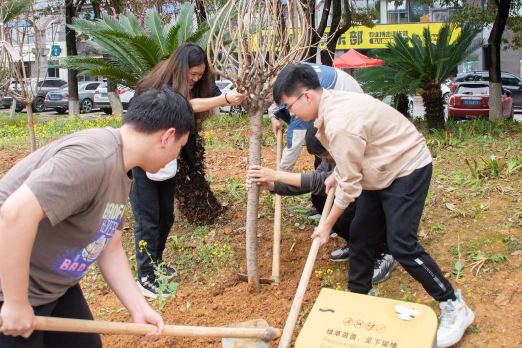 在长沙市开福区月湖公园组织开展了“植树春风里,且看山河绿”植树活动。学院团委书记张健、团委副书记郑繁简、朋辈心理互助会指导老师王羽珊和学院各学生组织主要学生干部共同参与到这次活动中。志愿者们在园艺工人的指导下进行了挖坑、施肥、植树、填土、压实、浇水等多个环节,在这个过程中学到了很多有关于植树爱林的知识,切实体会到劳动和收获的快乐。