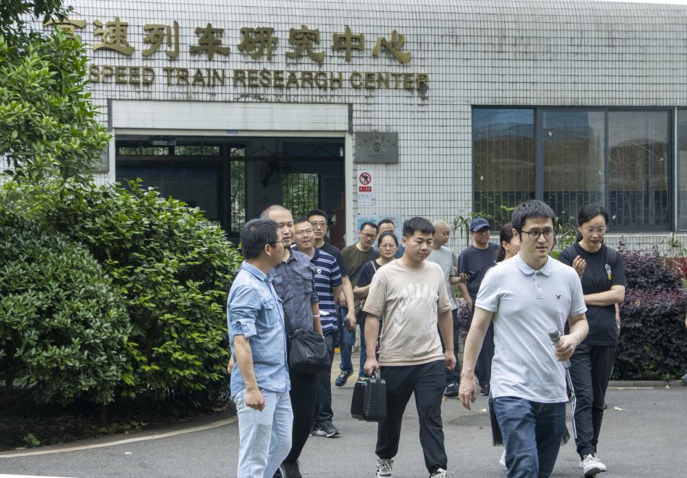 随后,宋副书记与98级校友一行沿着攀登路向上,来到了高速列车研究中心。在这里,钱博森副教授为校友们详细介绍了展柜上排列的列车模型,并结合模型讲述了中国列车的发展历程。他提到,学院为中国铁路事业的发展做出了卓越贡献,在高寒高速列车运行、复兴号列车外形研究、地铁列车与城际列车迭代等领域,都不乏有学院各级学子的身影。在高速列车空气动力特性动模型实验室内,他为校友们现场演示了动模型弹射试验,阐释了高速列车动模型的工作原理。