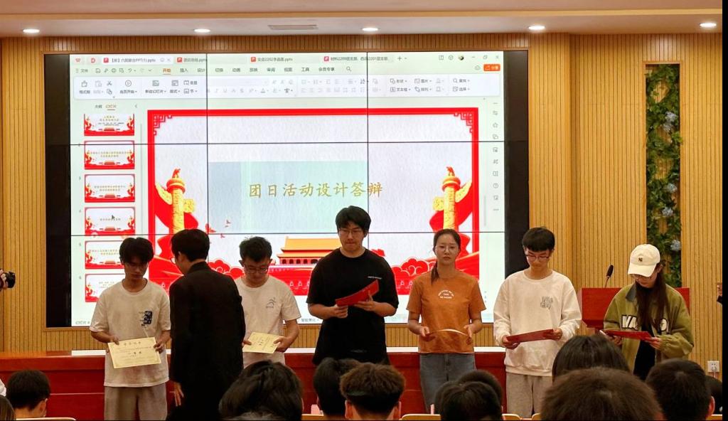 大会第三项,六院各派出一名团支书代表进行团日活动设计答辩。各院代表依次展示了本支部开展过的团日活动的策划设计,并从各个方面阐述自己的观点,分享工作经验。
