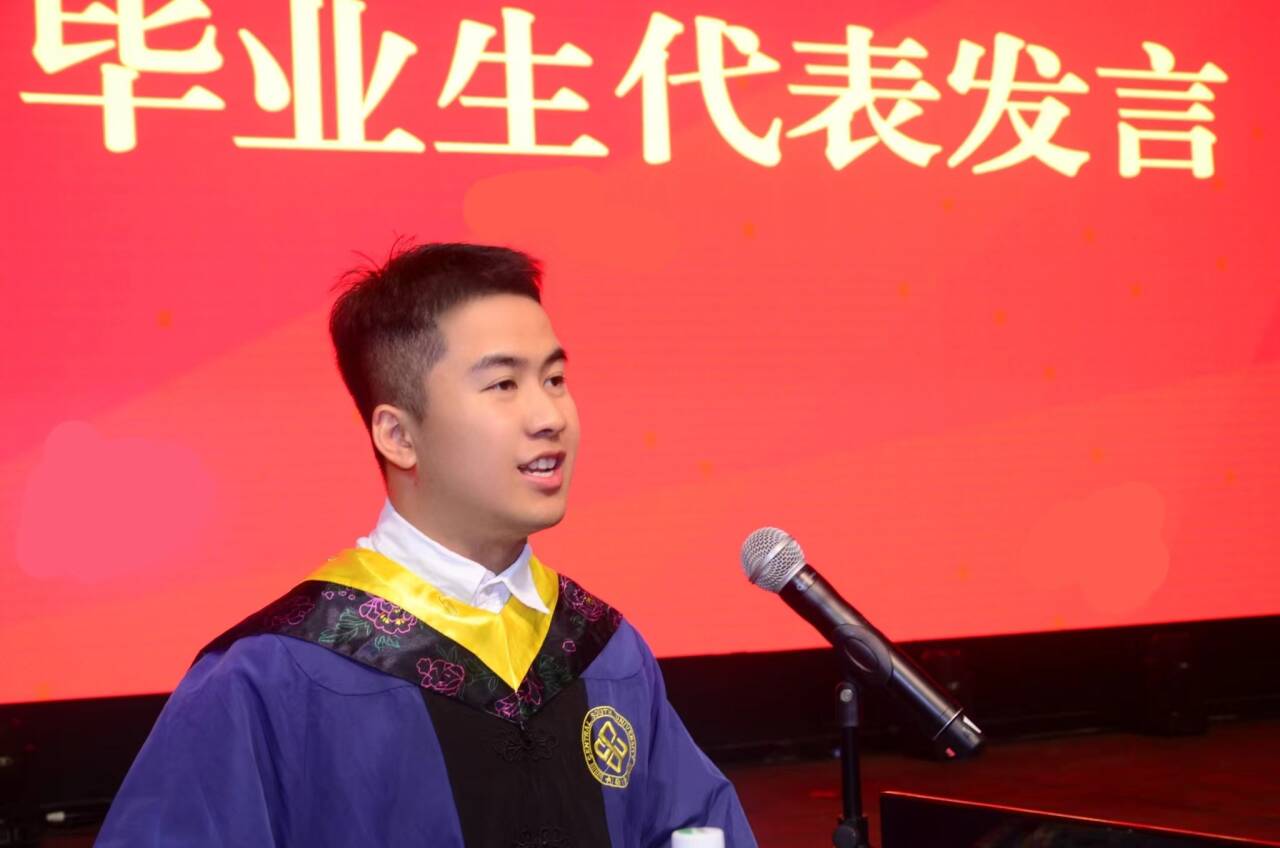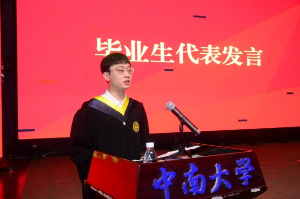 本科生毕业生代表付泽俊、研究生毕业生代表陶世锬相继发言,回顾校园生活的点滴,表达对母校、学院、师长及亲朋的感激之情,并祝愿学院继续繁荣发展。他们号召,面对崭新未来,在场学子要积极承担实现中华民族伟大复兴的历史使命,在交通强国新征程上贡献中南力量!