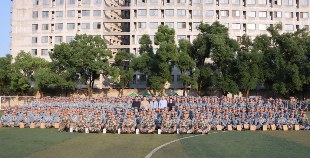 党委书记袁世平、副书记李苑,班导师代表蔡明旭,辅导员王尚君、官群雄至训练场慰问参训新生及带训教官。