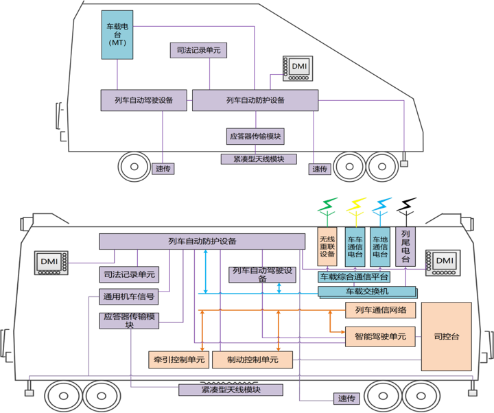按照CTCS-3+ATO标准建设高铁载运工具,包含ATP、ATO、BTM、JRU、MT电台、速度传感器等列控车载设备
